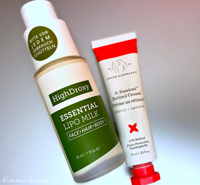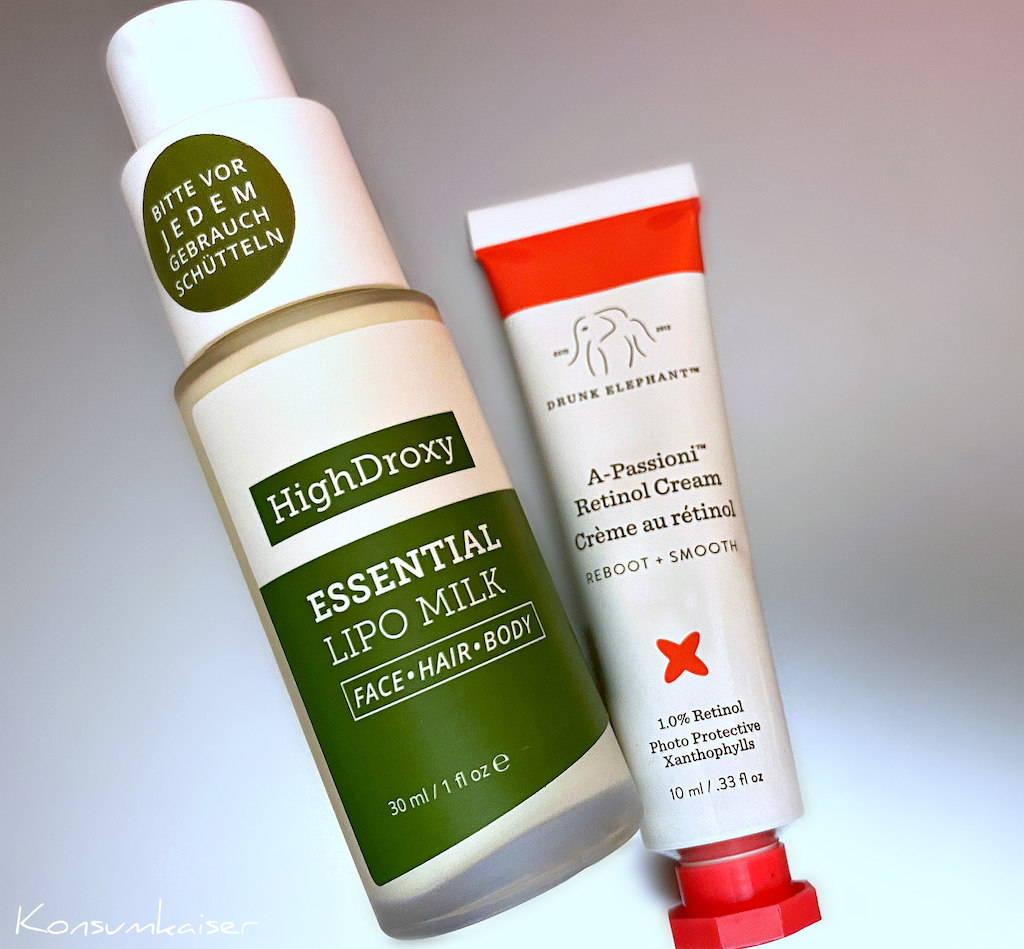 (Fotos: Konsumkaiser Drunk Elephant wurde selbst gekauft. HighDroxy Lipo Milk wurde vor Veröffentlichung als unverbindliches Pressetestmuster zur Verfügung gestellt. Keinerlei weiteres Sponsoring, keine Zahlungen, keine Affiliate Links.)