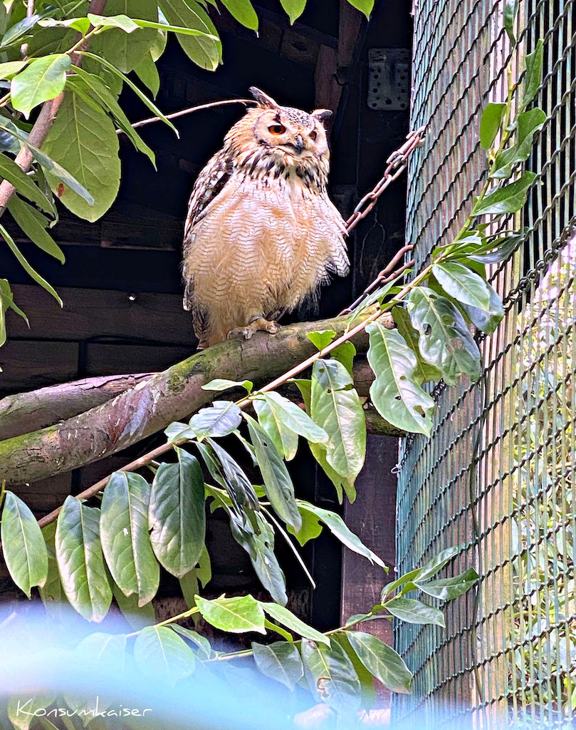 Als großer Eulen-Fan habe ich mich sehr gefreut, dass es immer noch die Eulengehege im Grugapark gibt. Allerdings muss man aus heutiger Sicht sagen, dass die doch ziemlich kleinen Volieren eine traurige Angelegenheit sind. Richtig fliegen können die Tiere dort natürlich nicht, und das drückt meine Stimmung dann doch merklich.