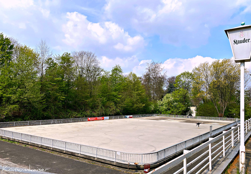 Schöne Erinnerungen und traurige Realität. Selbst das anliegende Gasthaus „Landhaus“ ist nur noch ein Schatten, dabei war es einmal ein äusserst beliebtes Ausflugslokal, mit schöner Außenterrasse, auf der man versonnen dem Treiben auf der Rollschuhbahn zusehen konnte. Ach ja…