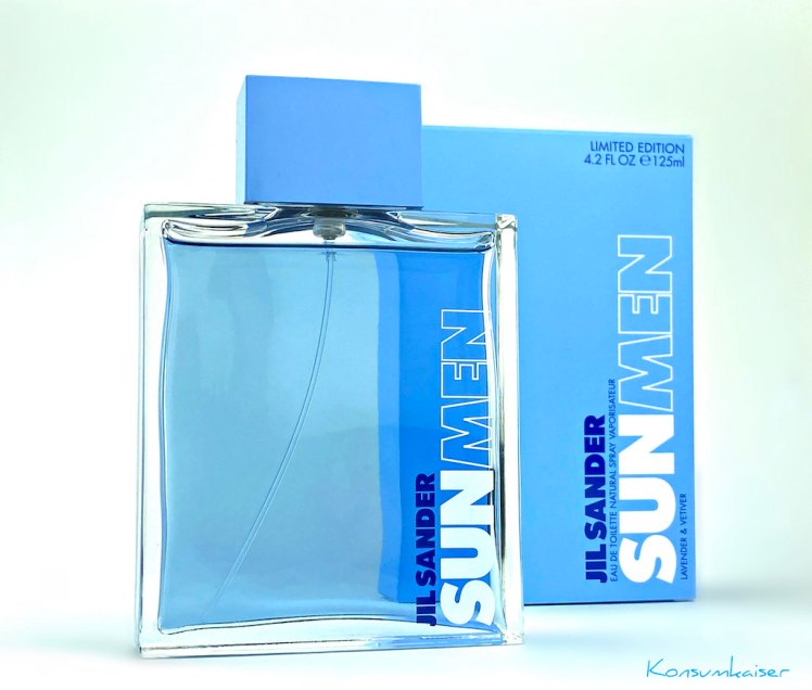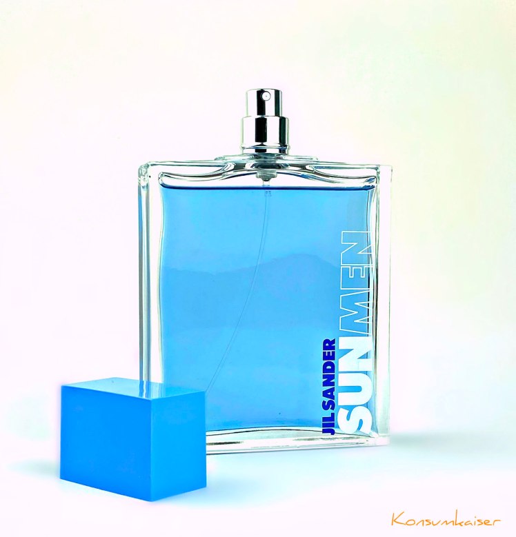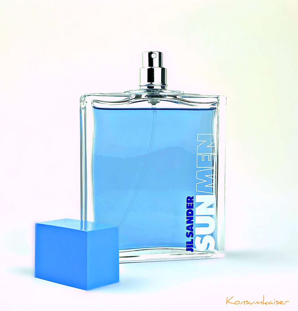Die solide Jil Sander Sun Men Flasche ist ein massiver Hingucker. Wow, so schön schwer, klar und blau. Natürlich denkt man da sofort an den strahlendsten Sommerhimmel, den man sich vorstellen kann.