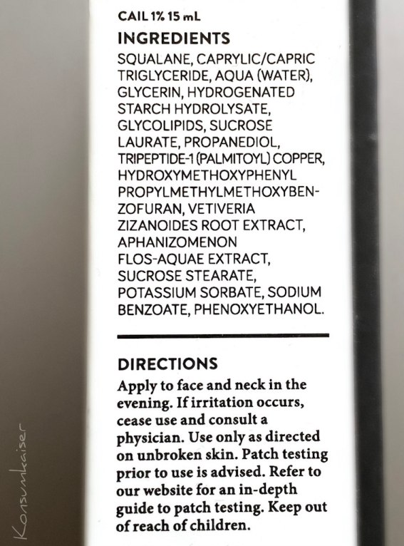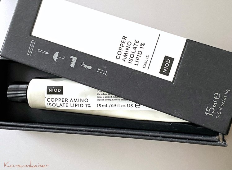 NIOD Copper Amino Isolate Lipid 1% (15 ml ca. € 80,00 – derzeit fast überall ausverkauft, ich werde schon ganz hibbelig)