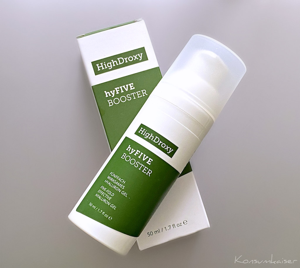 So bekomme ich also zB. auch noch wichtige Antioxidanzien für die Haut. An Tagen, an denen ich einen besonderen Feuchtigkeitsschub mit Hyaluron möchte/brauche, gebe ich nach ca. fünf Minuten Wartezeit (muss man nicht, ich habe das für mich so entwickelt) den runderneuerten hyFIVE Booster auch von HighDroxy dünn auf die Haut. Weniger ist hier mehr!