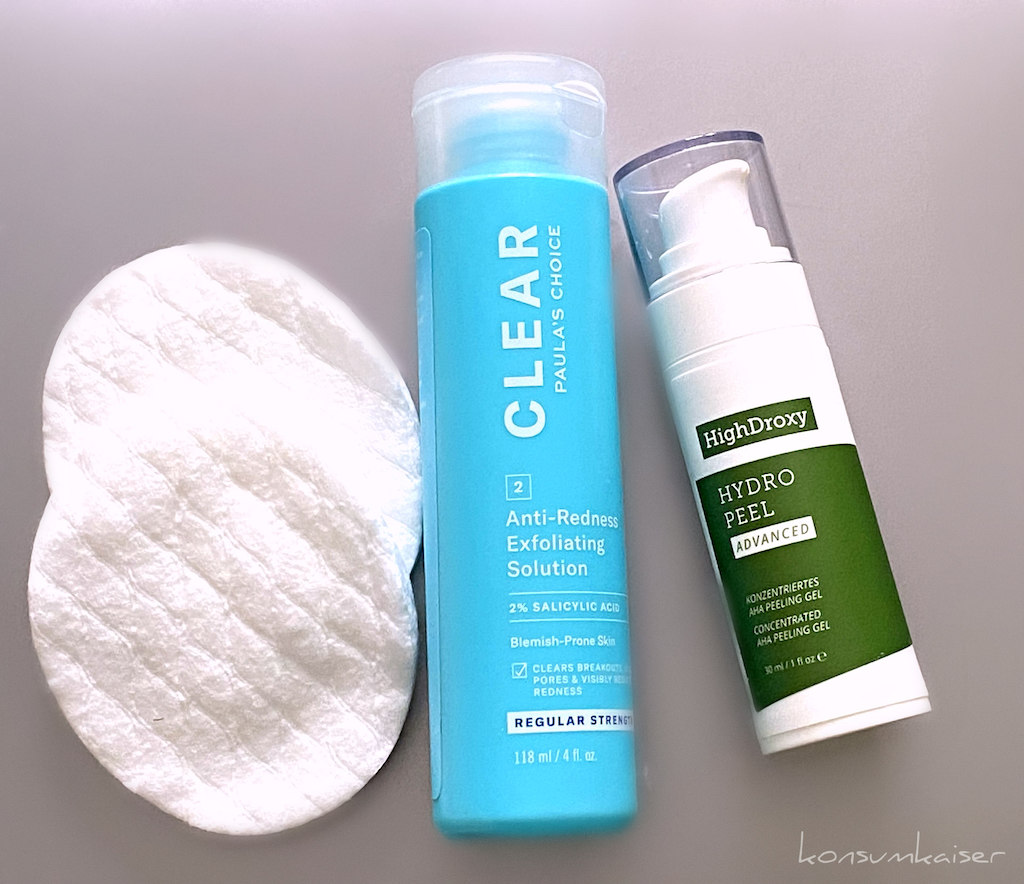 Ist das Produkt sanft genug, bleibt es in meiner Routine. HighDroxy hat nun die Hydro Peel Advanced Version, die ich noch bis zum Sommer nehmen werde, danach steige ich auf das Hydro Peel Sensitive um, das noch milder agiert und die Haut auch mit einem etwas höheren pH-Wert schont.