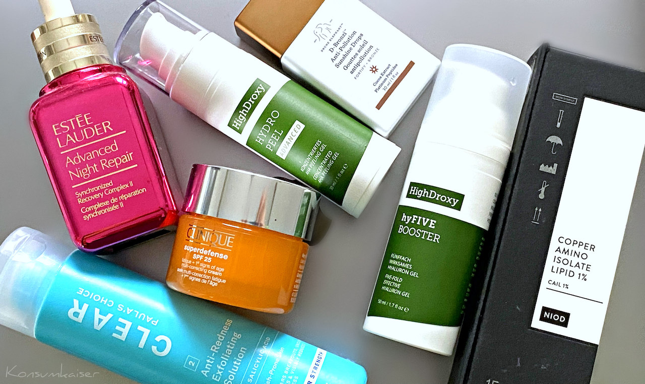 Heute möchte ich kurz mal wieder meine aktuelle Tages- und Nachtpflege-Routine vorstellen. Alte Bekannte und totale Neuheiten (HighDroxy Hydro Peel und der neue, verbesserte hyFIVE Booster) sind dabei, ohne Retinol, dafür aber überraschend wirksam.