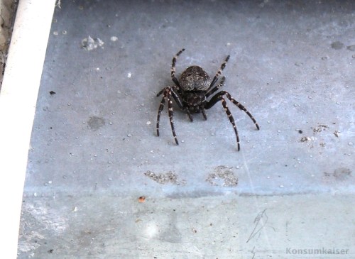 Nun gut, ich kann mich jetzt auch nicht um jedes Kleinstlebewesen kümmern, das mir über den Weg läuft. Das ging mir durch den Kopf, als ich aus dem Wagen stieg, den Weg zum Haus entlang lief und einem Nachbarn begegnete. Der grüßte freundlich und schaute mir etwas genauer auf die Schulter: „Du hast da eine Spinne sitzen.“
