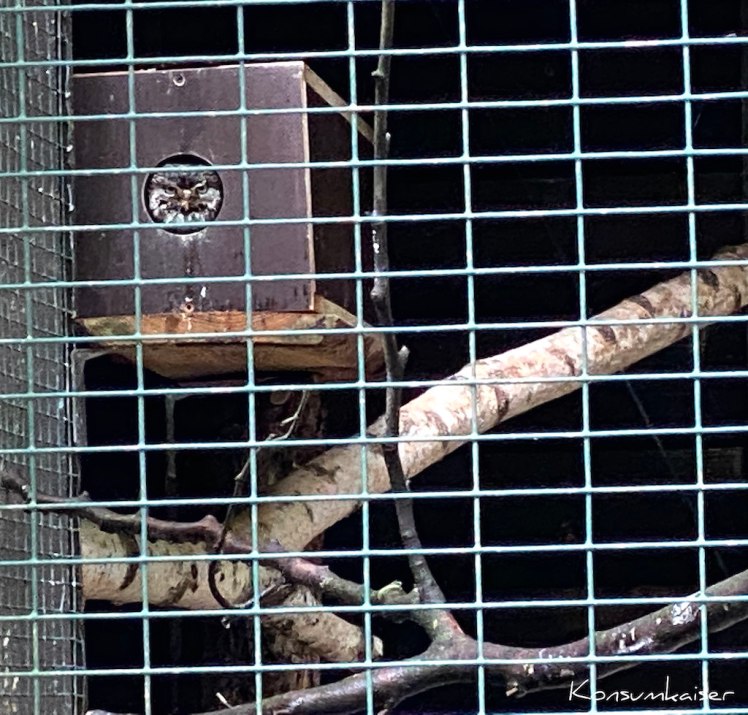 Mindestens einmal in der Woche schaue ich bei meinen neuen Freundinnen und Freunden im Eulengehege des Gruga-Parks in Essen vorbei. Neben den mächtigen Waldeulen leben dort auch ein paar Käuzchen. Das sind diese kleinen Eulchen, die man manchmal in der Nacht rufen hört.