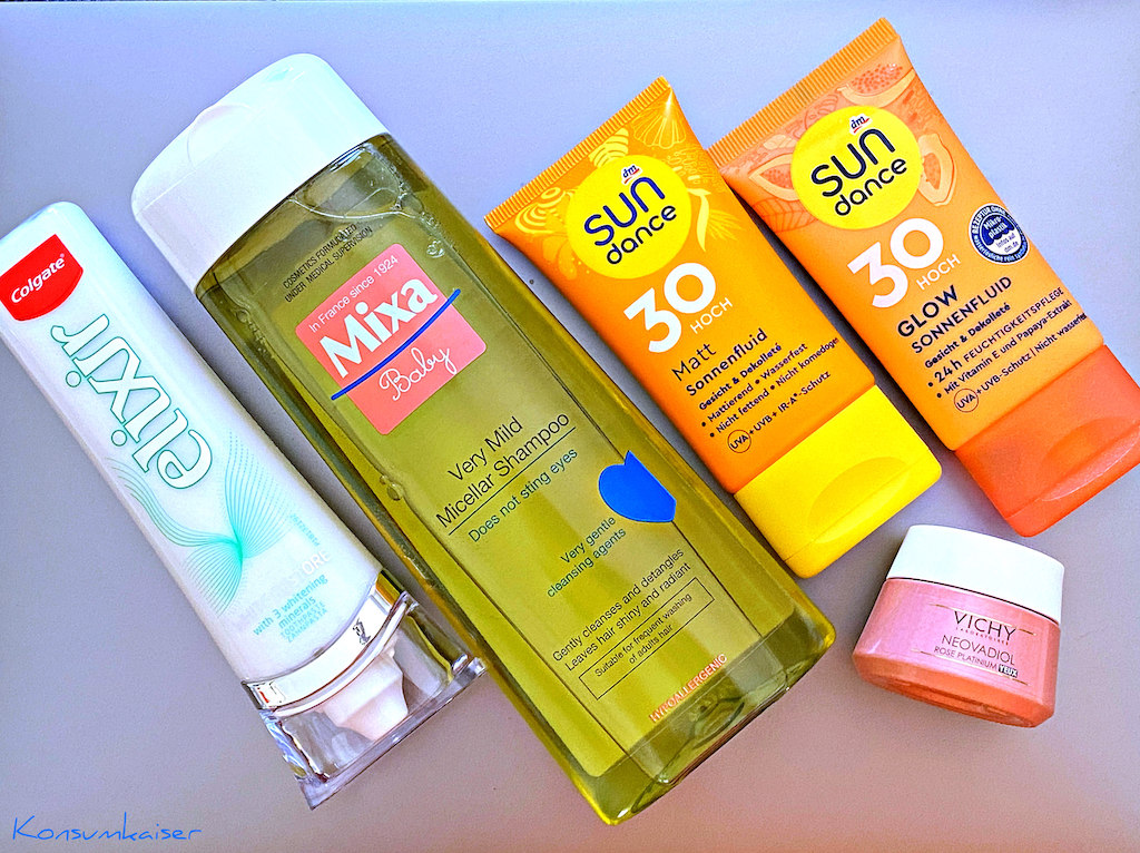 Ein paar Spontankäufe zeige ich heute hier, die unterschiedlicher nicht sein könnten. Ein Shampoo von Mixa, eine kaschierende Augenpflege von Vichy, zwei Sonnencremes aus dem dm-Markt, und eine Whitening-Zahnpasta. Licht und Schatten…