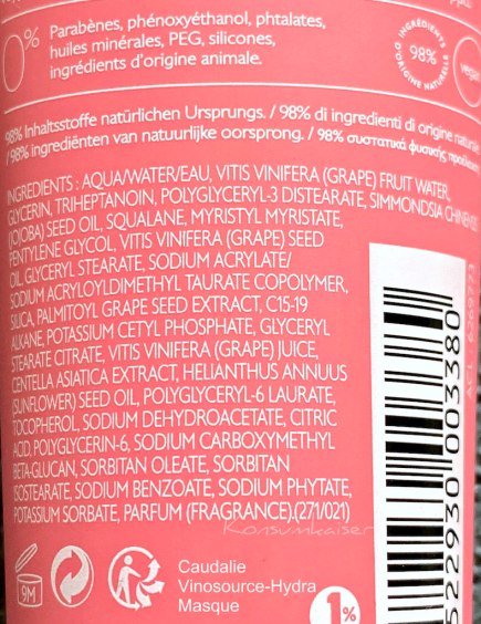 Wie gesagt, nicht aufsehenerregend, aber ganz offensichtlich effektiv. Wer lieber eine nicht ganz so cremige und pflegende Maske sucht, die solide Feuchtigkeit in die Haut bringt, aber auf Lipide verzichtet, wird wohl diese Maske der von Caudalie vorziehen.