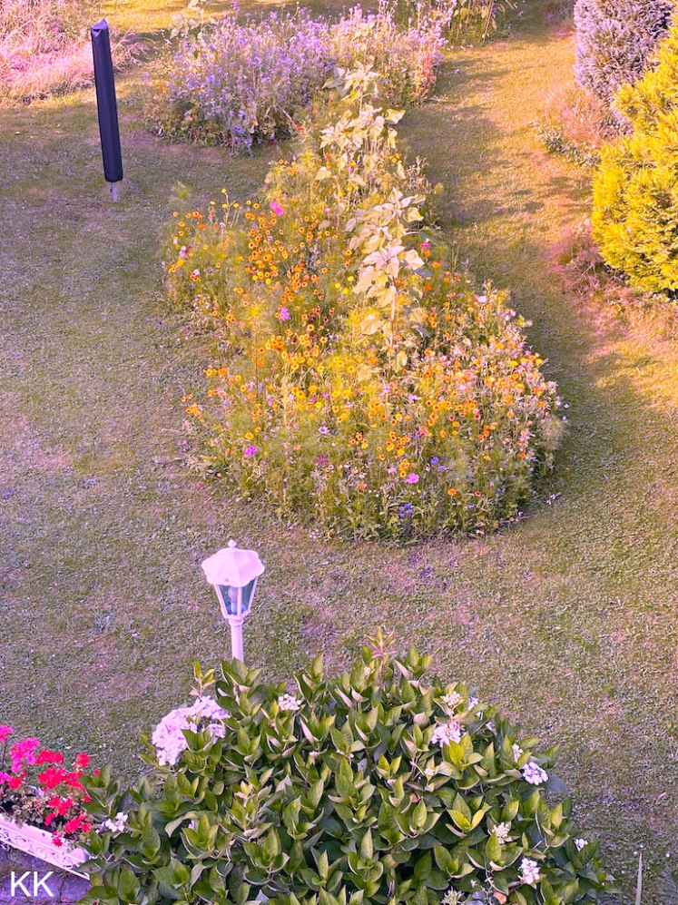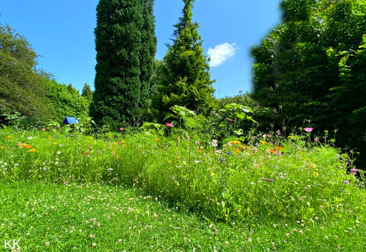 Ich wollte euch aber doch noch schnell mal meinen neuen, wilden Garten zeigen, der möglichst viel Fläche für allerlei Getier bieten soll. Nachdem es ja immer weniger Lebensraum für Insekten, Vögel und kleine Säugetiere gibt, muss man eben auch dort helfen, wo man nur kann.