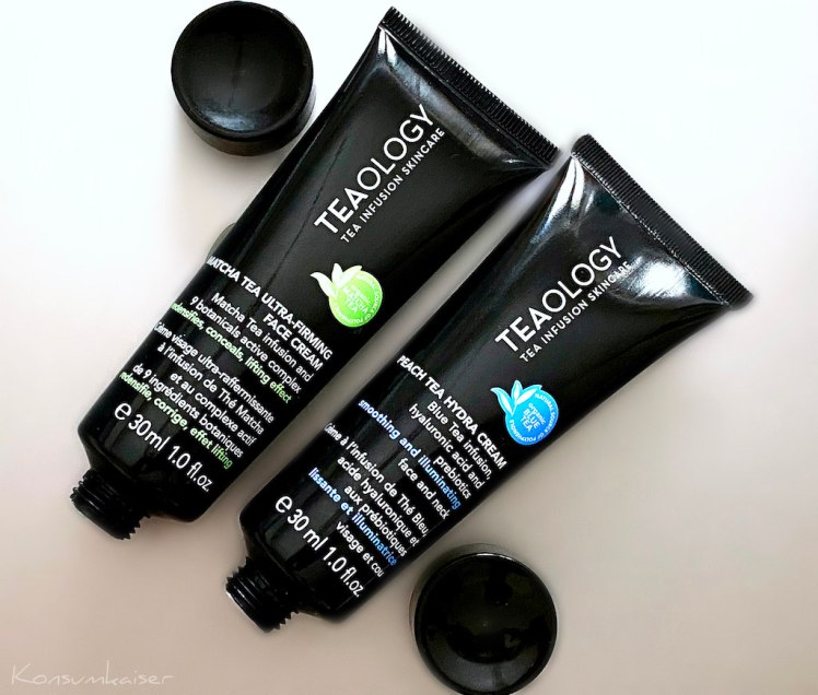 Auf die Firma Teaology wurde ich durch zwei Cremes aufmerksam, die beide optisch schönere Haut versprechen. Die Peach Tea Hydra Cream sorgt für pralle Haut und etwas Glow. Wohingegen die Matcha Tea Ultra-Firming Face Cream kleinere Rötungen abdecken und Fältchen optisch ausblenden soll. Ob das klappt und gut verträglich ist?