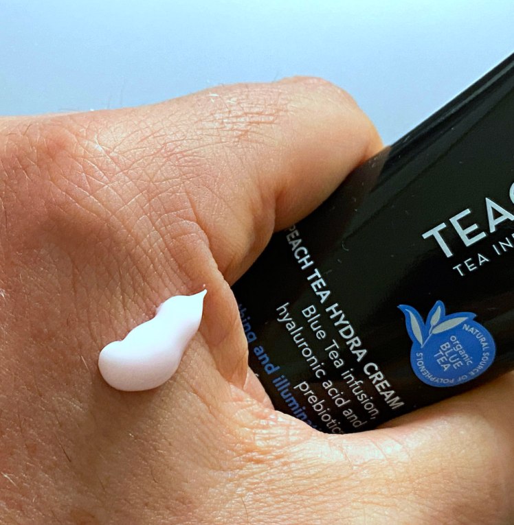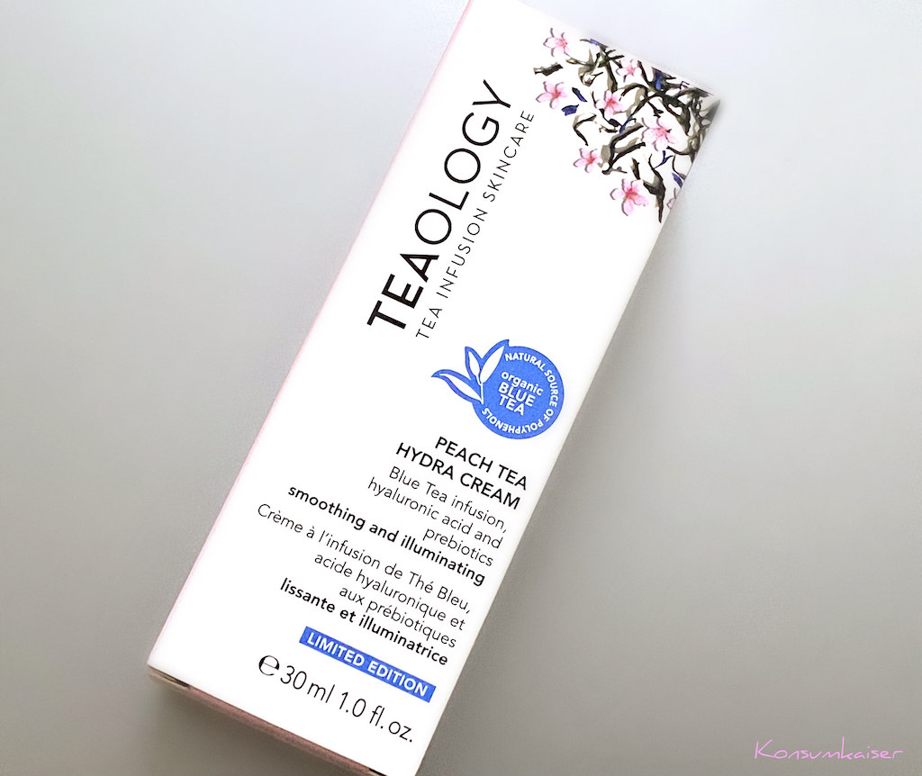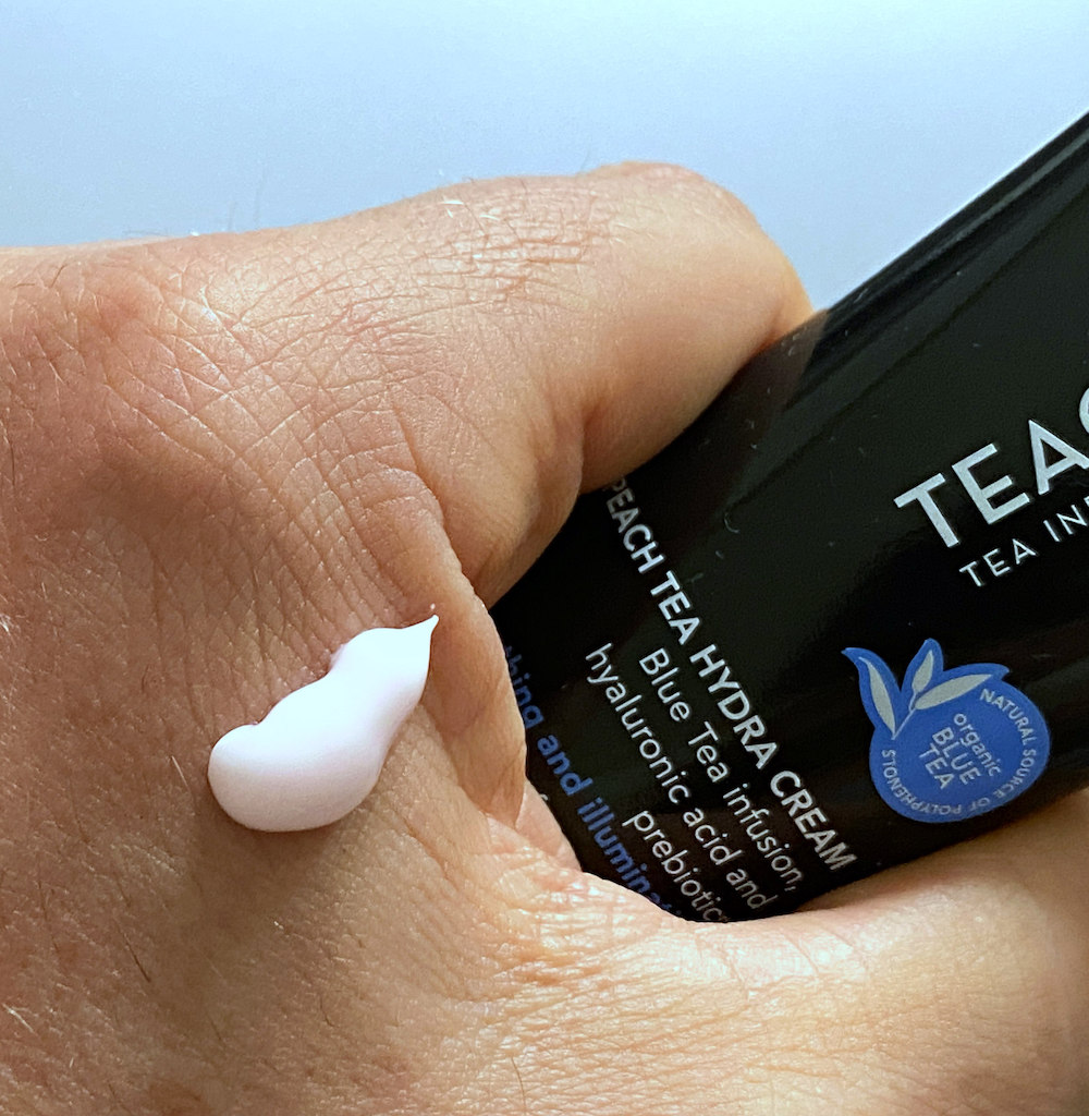 „Die Peach Tea Hydra Cream ist die Feuchtigkeitspflege von Teaology für samtig-frische Haut, die fantastisch leuchtet. Die einzigartige Formulierung kombiniert einen Aufguss aus blauem Oolong-Tee mit kraftvoller Hyaluronsäure und Präbiotika. So spendet sie der Haut genau die Menge Feuchtigkeit, die sie zum Strahlen benötigt, und hinterlässt sie nicht nur ultrageschmeidig, sondern auch spürbar glatter.“