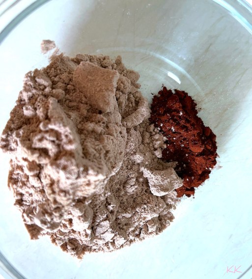 1 Teelöffel purer Kakao, und wer es etwas süßer mag noch 1 EL Xucker.