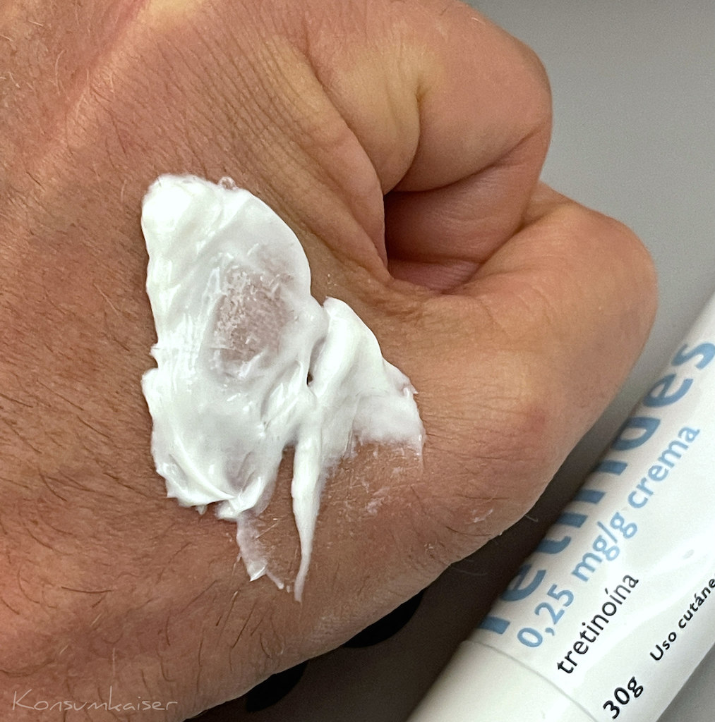 Ich brauche die Tube noch auf, nutze sie aber nur noch im Wangenbereich. Habe noch zwei andere Tretinoin-Präparate mit höherer Konzentration und anderer Zusammensetzung da, die ich mir über Bekannte im Ausland besorgt habe. Da bin ich noch am Ausprobieren. Bis jetzt bin ich aber noch nicht so weit, dass ich sagen kann, ob Tretinoin wirklich mein Ding ist.