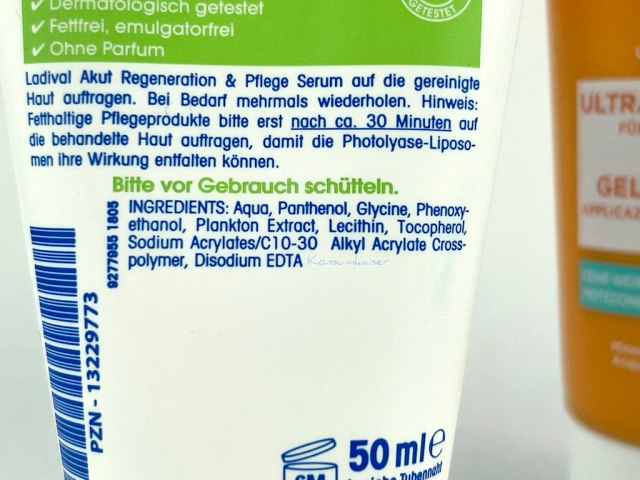 Ladival „Regeneration & Pflege Serum * Fluid für das Gesicht“ (50 ml ab ca. 11 Euro, über Apotheken)