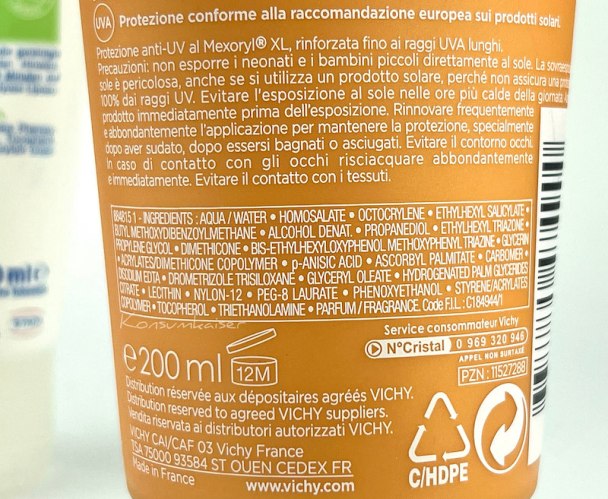 Die Schutzleistung, die Wasserfestigkeit, und die anderen technischen Faktoren sind sicherlich gut und empfehlenswert, wie man es von einer Weltfirma wie Vichy/L´Oréal erwartet, doch was mich hier wirklich stört, ist die Erwartungshaltung, die man aufbaut, indem man das Produkt „Gel-Milch“ nennt und es als „ultra-leicht“ bezeichnet. Das ist in meinen Augen irreführend.