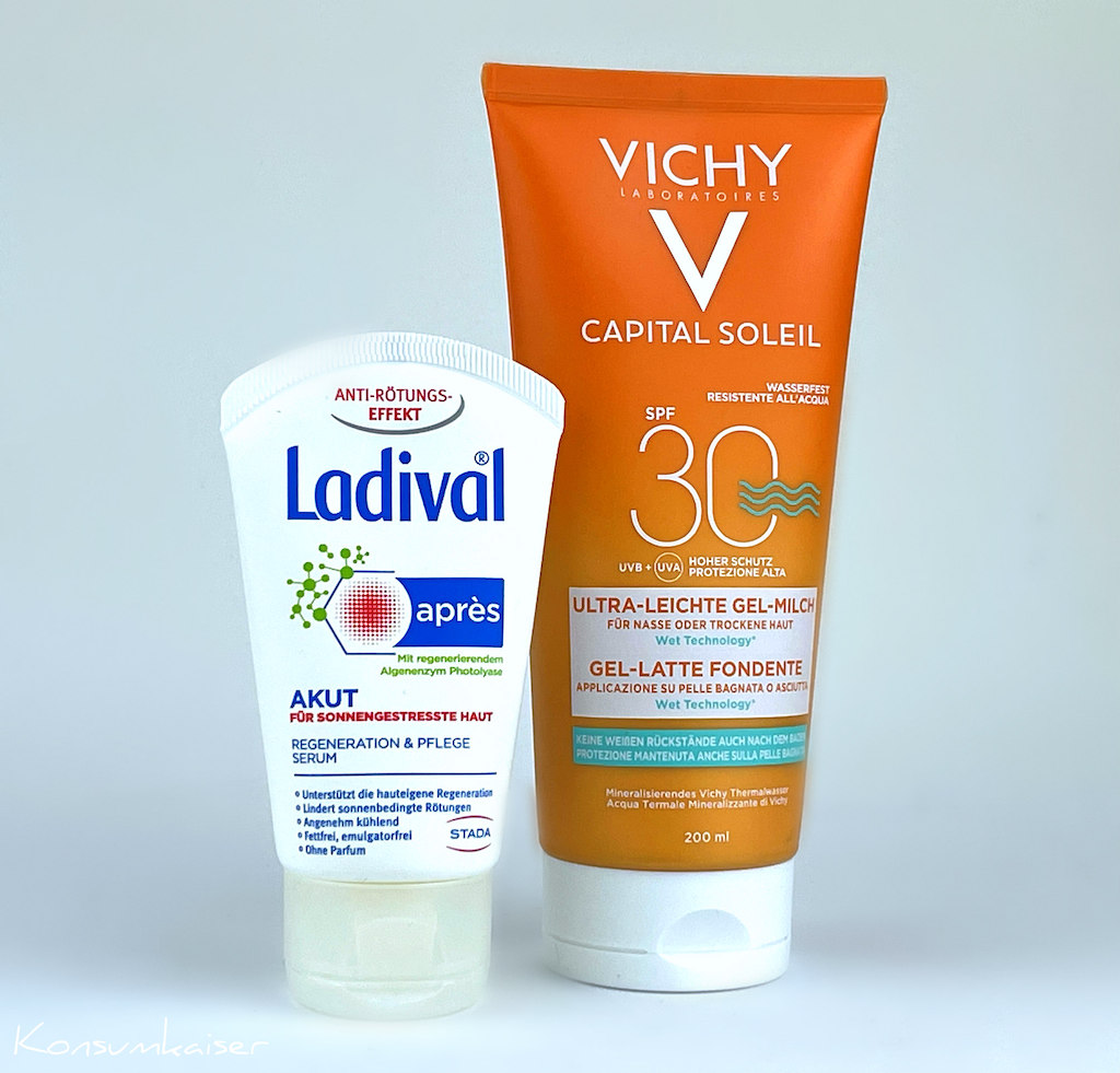 Ladival hat mich bisher fast immer überzeugt, und die haben auch als eine der wenigen Firmen diese verkapselten Algenenzyme mit drin. Ich hoffe,e s ist auch genügend enthalten, aber es schadet ja wohl auch nicht. Der Sonnenschutz ist auch nicht übel, kann man echt gebrauchen. Vichy hat mich dagegen fast nie überzeugt, da ist das alte Nivea noch besser. Vichy klebt bei mir immer und zieht Sand magisch an, furchtbar.