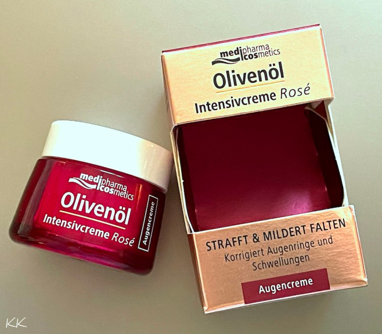 Vor über einem Jahr hatte ich über die Olivenöl „Intensivcreme Rosé Augencreme“ von Medipharma Cosmetics berichtet. Damals löste die getönte Augencreme bei mir seltsame Rötungen unter den Augen aus, sodass ich das Produkt an eine Freundin weitergereicht habe.