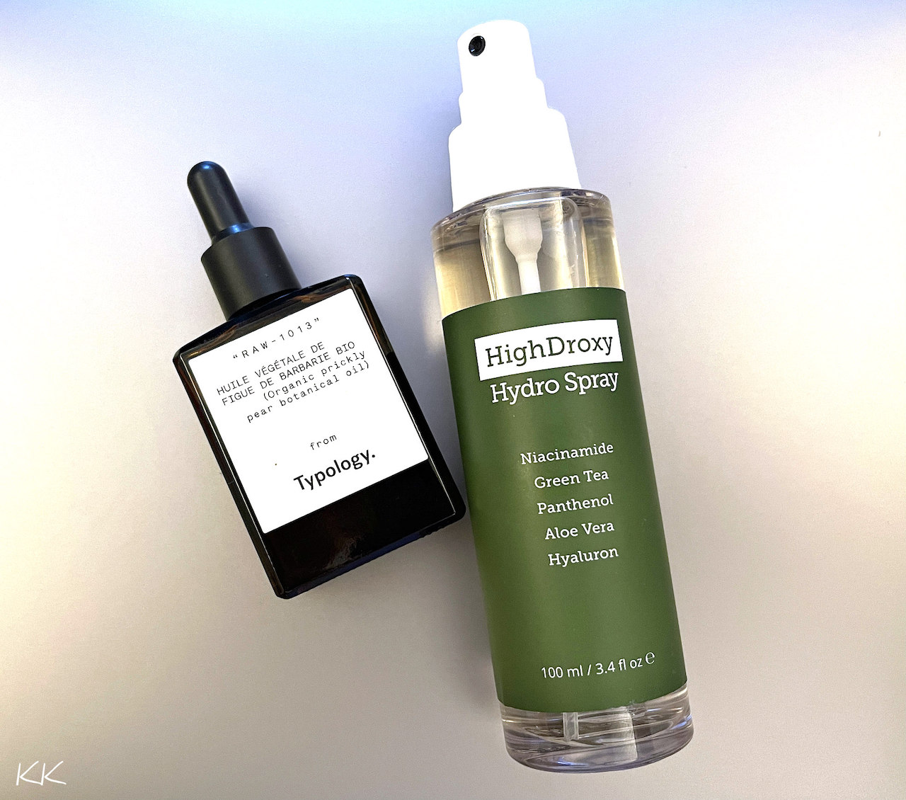 Nachdem ich ja von den Beautytrends 2022 vor einiger Zeit berichtet hatte, gibt es für mich nun auch gleich noch ein Dreamteam, das ich vor der Tretinoin-Creme auftrage. Ich nutze (sparsam) ein hochwertiges Feuchtigkeitsspray und verteile dann direkt darüber ein paar Tropfen vom Kaktusfeigen-Öl von Typology.