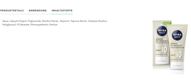 Bestes Beispiel derzeit: Nivea beschert den Herren eine „tolle“ neue Gesichtspflege mit nur wenigen und „ausgesuchten“ Inhaltsstoffen. Die Feuchtigkeitscreme in dieser Serie enthält laut Werbeaussage nur 10 Inhaltsstoffe, und sie soll „die Haut beruhigen“.