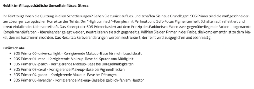 Einmal kann man prima die Cremegrundlage selbst aussuchen, da empfehle ich natürlich eine ganz reizarme Pflege, bestenfalls auch mit UV-Schutz (ich nutze Clarins). Ausserdem kann man den Primer sehr niedrig dosieren, denn wie wir wissen ist Clarins sehr großzügig, wenn es um potenziell hautreizende Duftstoffe geht. Typisch Luxus-Franzosen. 😉 So hält sich der Duft auch für empfindliche Nasen in Grenzen.
