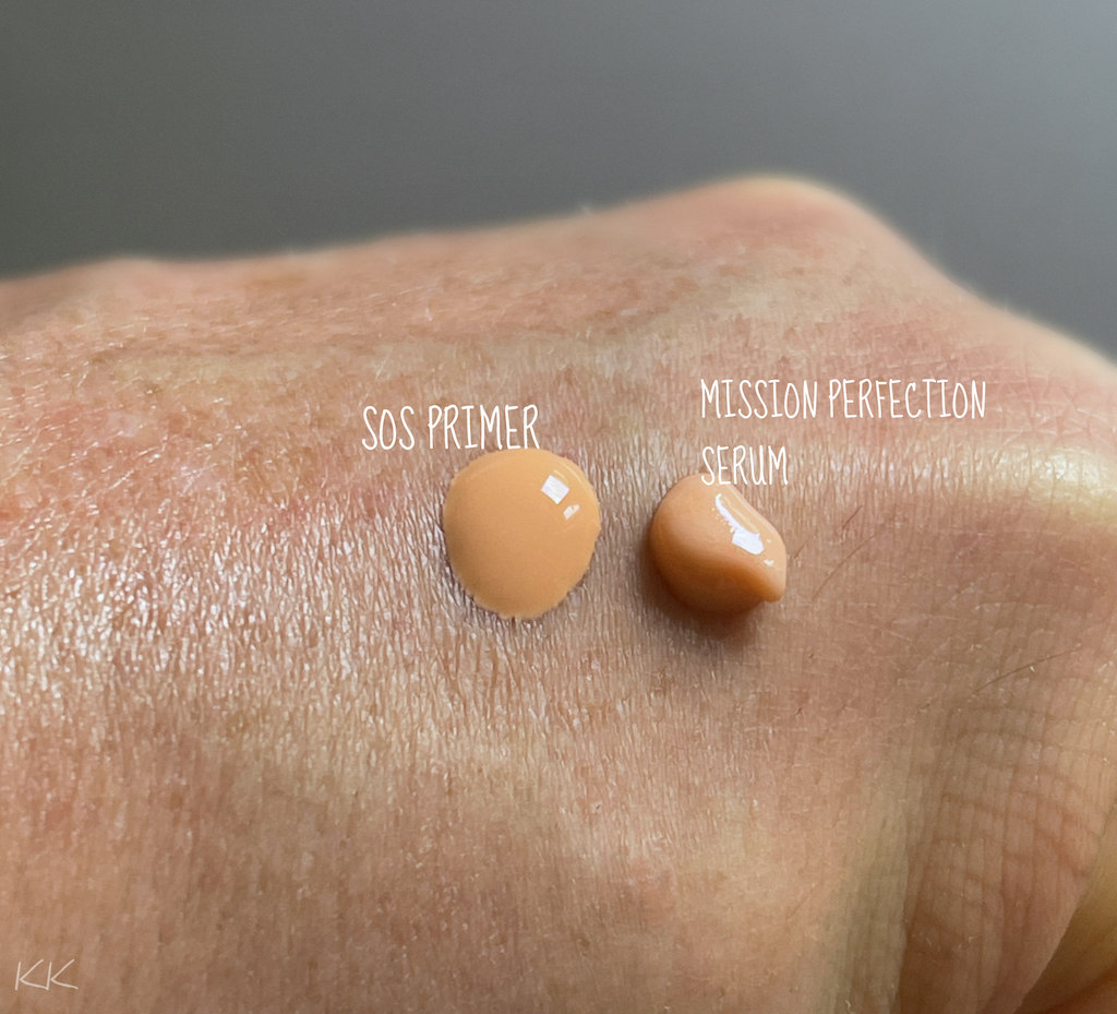 Von Clarins gibt es den „SOS Primer“ in der Farbe „Coral“, und die ist nahezu identisch mit der Tönung des Mission Perfection Serums.