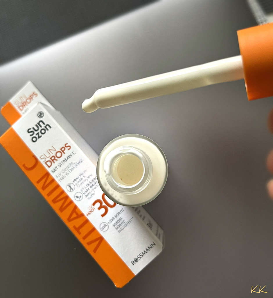 Um es mal vorweg zu nehmen: Die „Sun Drops mit Vitamin C“ von Rossmann aus der hauseigenen Sun Ozon-Serie sind sehr gefällig. (30 ml ca. 4 Euro)