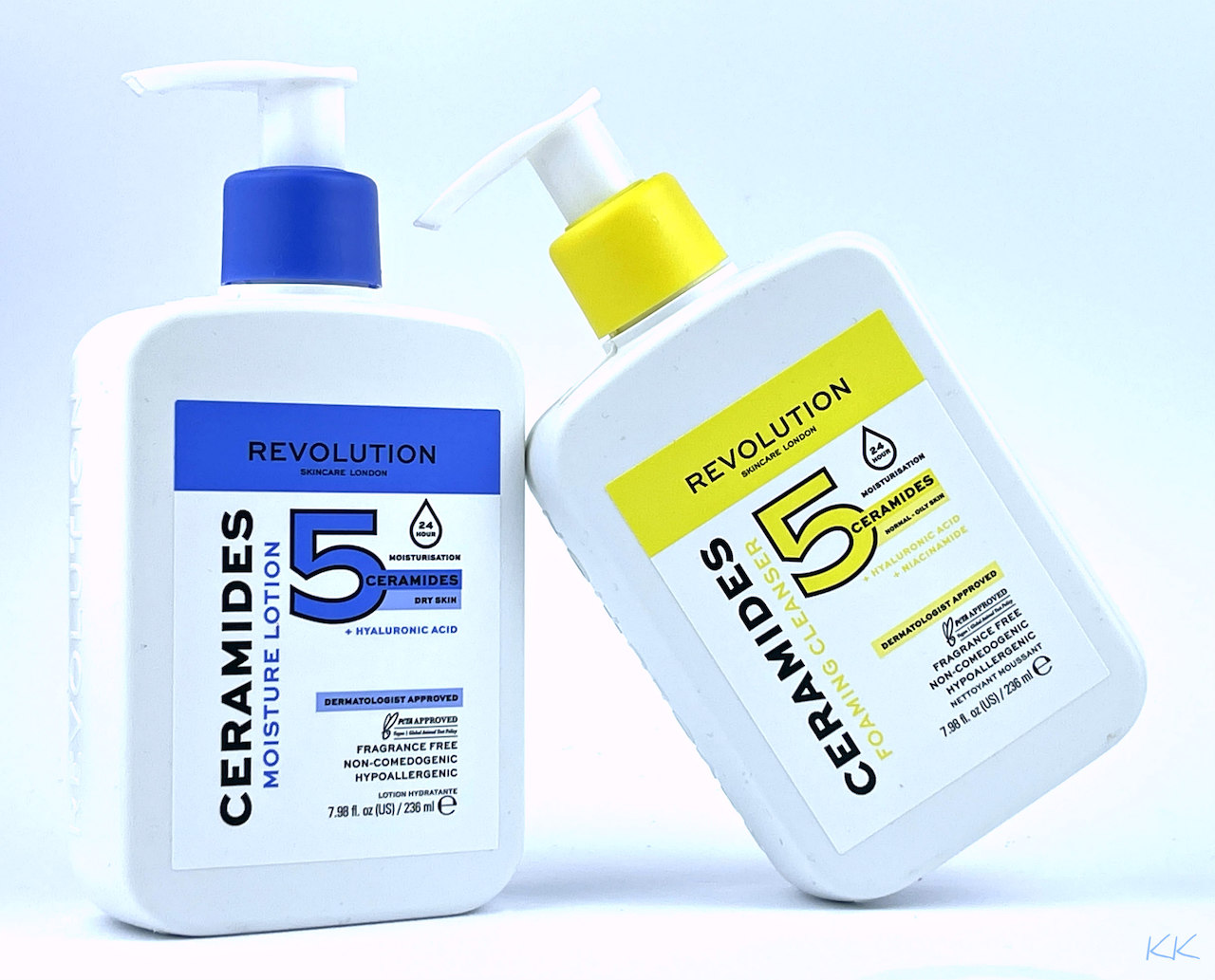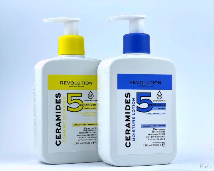 Freundlich sehen sie aus, die zwei Pumpspender aus der neuen Ceramides 5 Serie von Revolution Skincare London (und erinnern stark an die ähnlichen Produkte von CeraVe).
