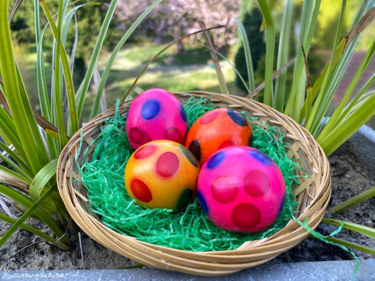 Und jetzt wünsche ich Euch Frohe Ostern! Hoffentlich habt Ihr bereits sämtliche Ovalitäten im Garten gefunden, sofern da welche versteckt waren. Bis bald!