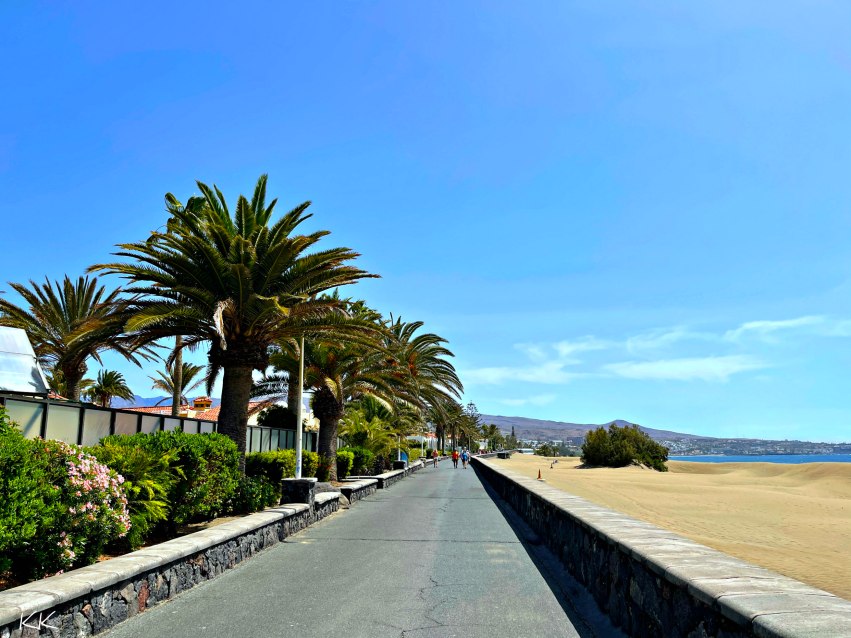 Aber die Umgebung konnte auch entzücken, wir wohnten direkt bei den berühmten Dünen von Maspalomas, denn mit Palme sieht selbst die langweiligste Straße gleich nach Urlaub pur aus!