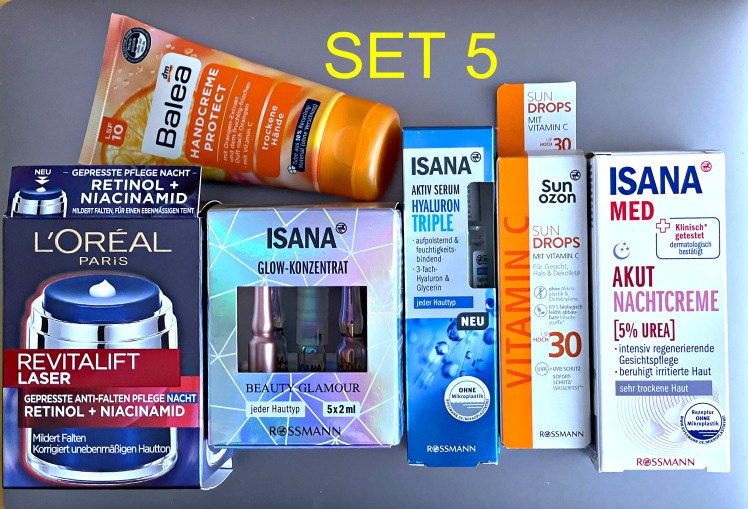 Um mir ein wenig Arbeit zu sparen, verzichte ich auf langwierige Beschreibungen zu den einzelnen Sets. Die Fotos kann man aber anklicken, dann werden sie größer und die einzelnen Produkte sind genau zu erkennen.