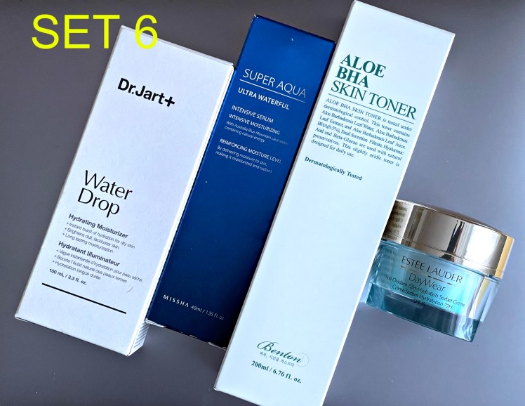 Da meine Haut im Sommer gerne viele Feuchtigkeit mag, möchte ich mich für Set 6 in den Topf werfen.
