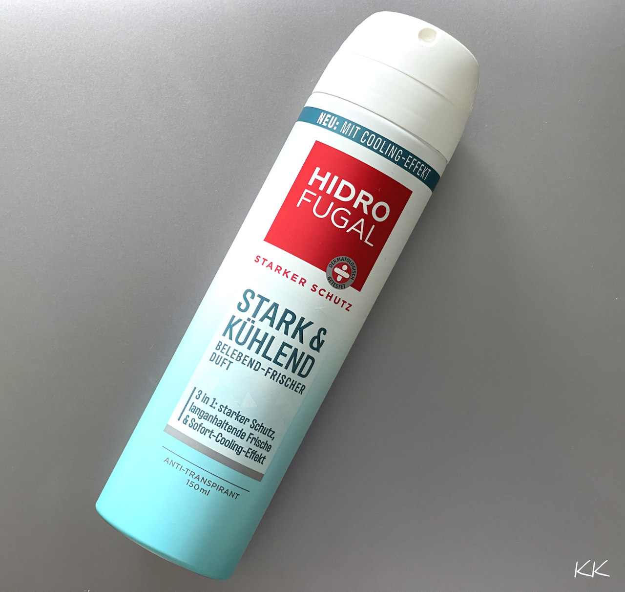 Mit einem derzeit neuen Produkt bin ich leider gar nicht warm geworden (haha). Es kommt von Hidrofugal und verspricht zum Anti-Transpirant auch noch eine „starke Kühlung“: „Hidro Fugal Stark & Kühlend“ (150 ml Spray ca. 3 Euro)