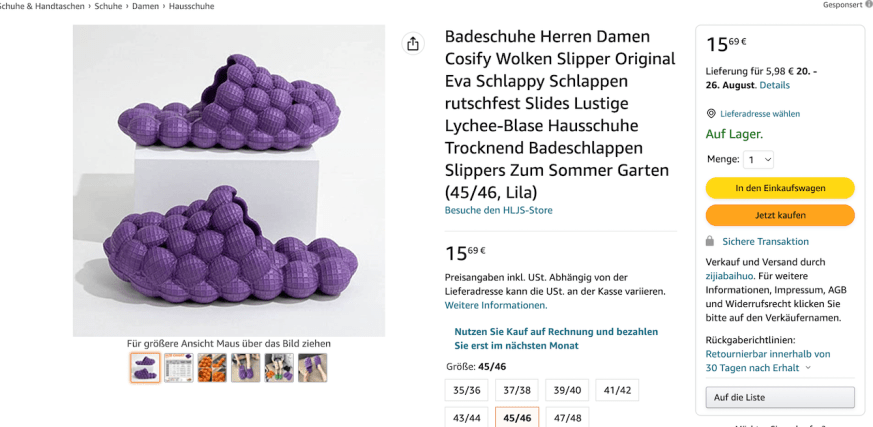 Aber scheinbar hat der grundgute Händler Amazon nun die Führung übernommen und will das Bewusstsein für die (oder gegen die?) Affenpocken schärfen. Eine Gedankenhilfe, die einen beim Anblick sofort Abstand halten lässt. Ganz einfach ein Schuh mit (No-)Show-Effekt. Oder war der gar nicht als solches gedacht…? Brrr…