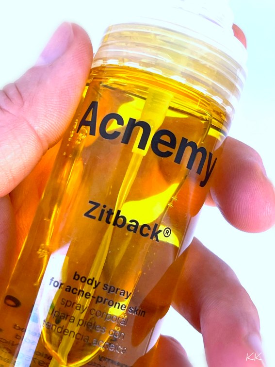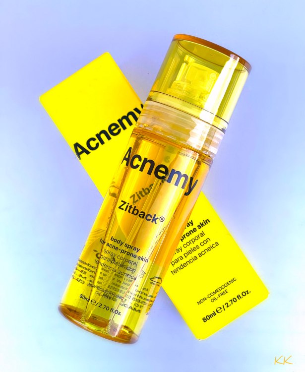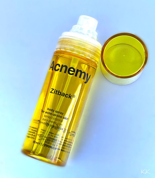 Wie gut, dass Acnemy (Mutterfirma ist das spanische Niche Beauty Lab) so schön neongelbe Akneprodukte herstellt, die einem im Gedächtnis bleiben. Klar: Zitback! Ein Spray gegen Akne auf dem Rücken. Passt doch. Überhaupt, ein Spray, das ist doch total praktisch, man muss niemanden damit belästigen, und seinen pickligen Rücken präsentieren. Selbst sprühen die Aknegeplagten am besten. 😉