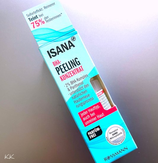 Nur mal schnell als Warnung: Es geht um das BHA Peeling Konzentrat von Rossmann-Eigenmarke ISANA. 2% BHA(-Komplex) und Panthenol zu einem sehr günstigen Preis (30 ml ca. € 3,95 – bei Rossmann und Rossmann Onlineshop).