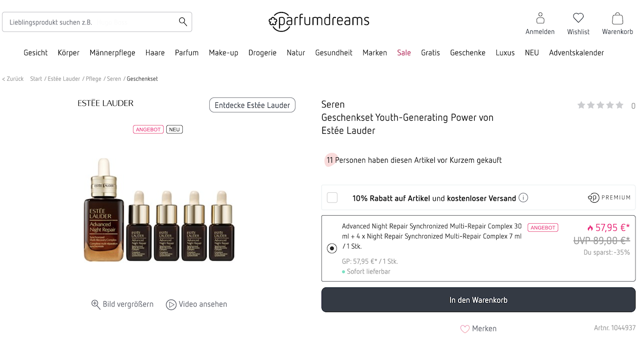 Bei Parfumdreams gibt es gerade ein Set mit 30 ml ANR von Lauder, und dazu 4 x 7 ml. Mini-Fläschchen. das ergibt also effektiv 58 ml. Und das für gerade mal 57,95 Euro.