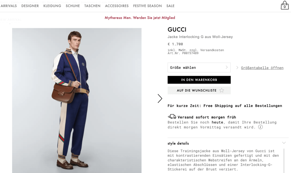 Ich schnüffle ja gerne ab und zu im MyTheresa Onlineshop herum, einem DER Geschäfte im Internet, wenn es um Designerfashion geht. Die dort gelisteten Herren-Designer sind zwar nicht gänzlich top-aktuell, aber es sind doch viele schöne Dinge dabei. Meist leider ausserhalb dessen, was ich bereit bin auszugeben, wenn es um Klamotten geht.