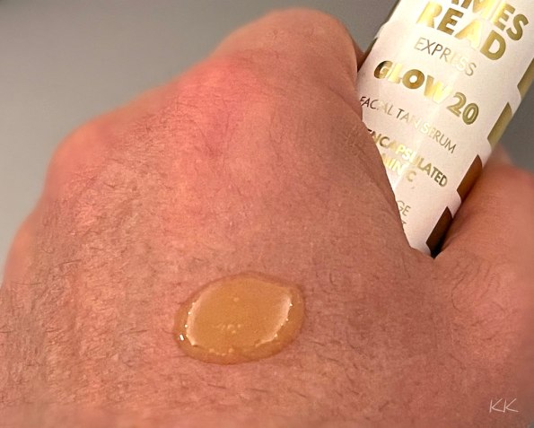 „Für einen leichten Sunkissed Glow waschen Sie das Serum nach 20 Minuten ab. Lassen Sie das Produkt 60 Minuten einwirken, erzeugen Sie einen mittleren Goldenen Glow. Für einen tieferen Bronzed Glow sollten Sie das Serum vor dem Abwaschen 90 Minuten auf der Haut belassen. Damit die Handflächen nicht verfärbt werden, waschen Sie die Hände sofort nach der Anwendung gründlich ab.“