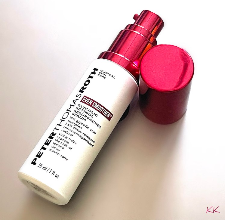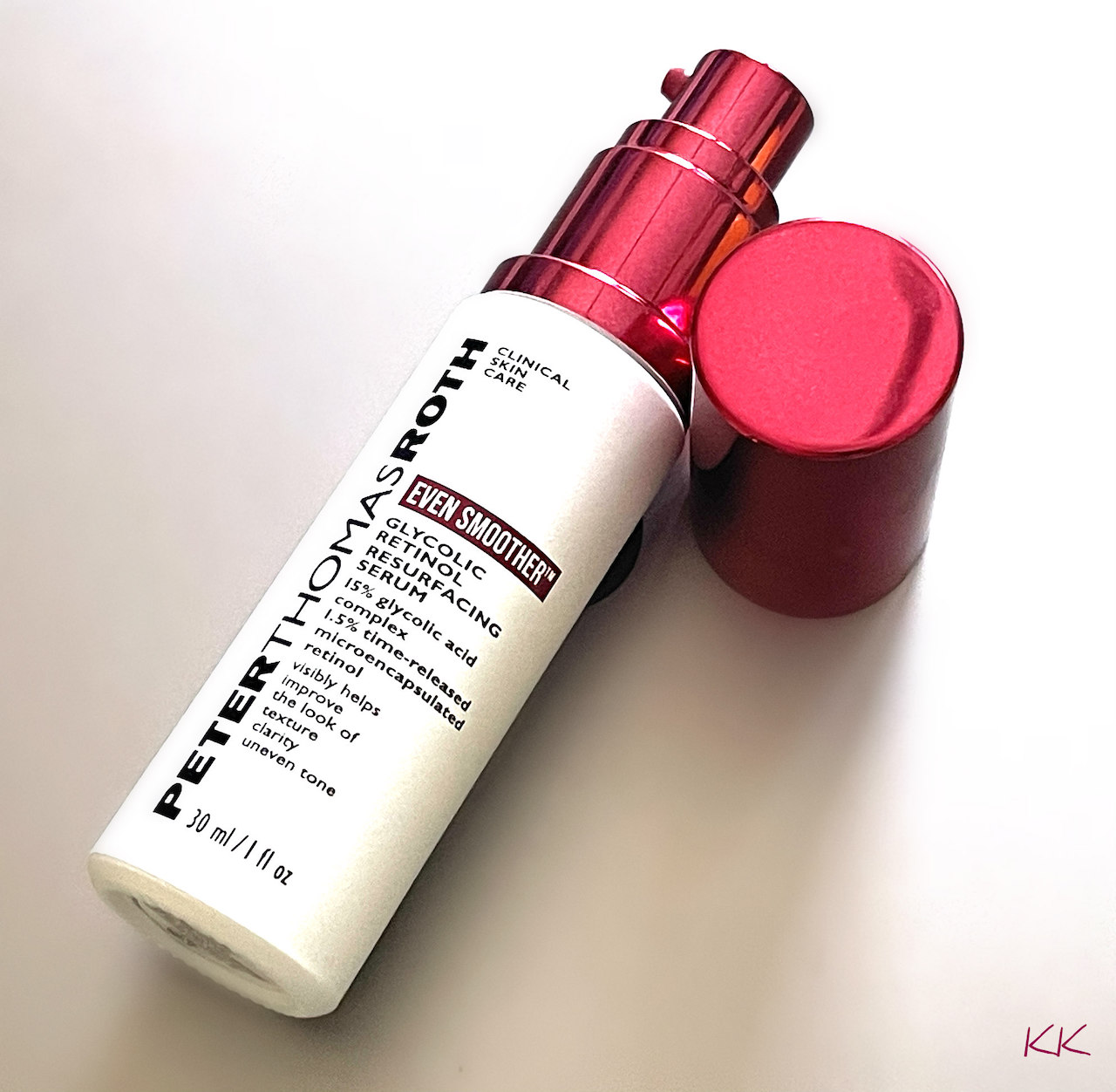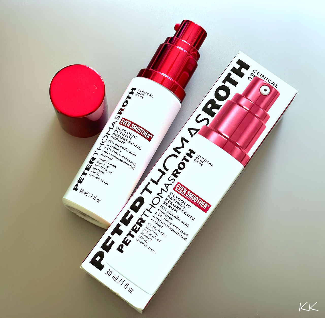 So auch bei mir, ich habe das „Even Smoother Glycolic Retinol Resurfacing Serum“ von Peter Thomas Roth mit einem gute Rabatt bestellt, und sogleich begeistert angewendet (derzeit im Angebot bei Zalando 30 ml ca. € 48,95).