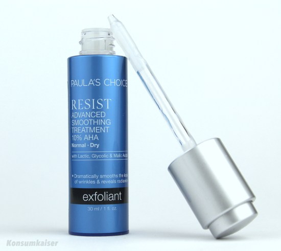 In meinem Schrank dümpelt seit Ewigkeiten eine Deluxe Probe von Paula’s 5% Resist AHA, mittlerweile fast leer, aber leider kein Nachkaufprodukt (anders als Paula’s BHA).