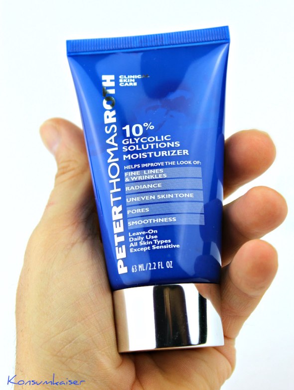Peter Thomas Roth „10% Glycolic Solutions“ ist für meine Haut derzeit genau richtig, um immer noch schonend genug für den polierte Haut-Look zu sorgen. Temporär zwar, aber immerhin, für die Passfotos hat es gereicht. 😉