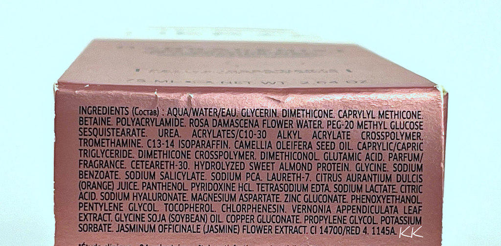 Die Inhaltsstoffliste ist weder überraschend, restlos reizarm, und eigentlich nicht sonderlich innovativ, aber es ist diesmal das Ergebnis das zählt. Was sich hier in der eher langweiligen Aufzählung verbirgt, ist eine offenbar sehr geschickt kombinierte Ansammlung von Feuchtigkeitsspendern, Hautberuhigern und einer Galenik, die die Haut schmeichelhaft umhüllt, in sie eindringt, aufpolstert und weich zurücklässt.