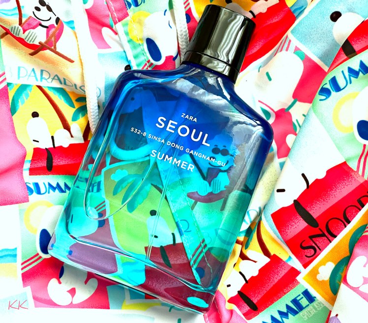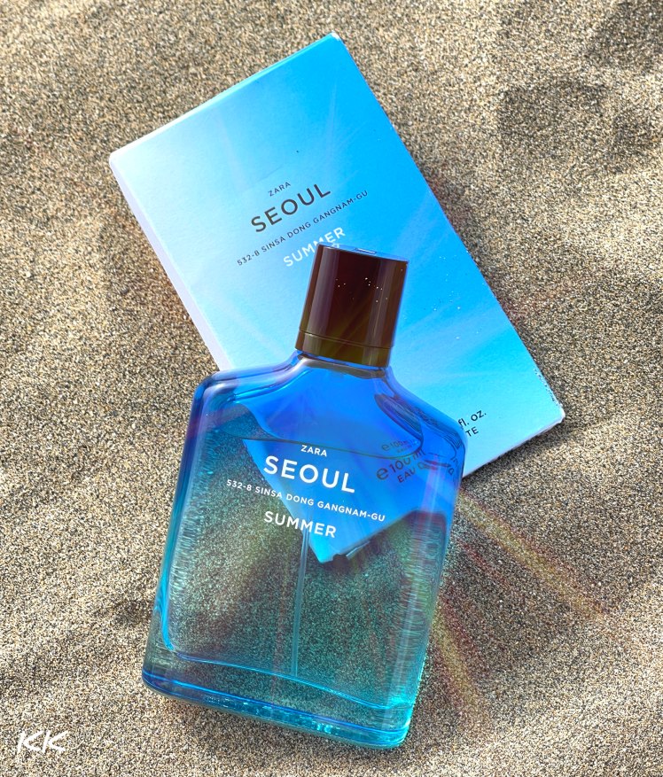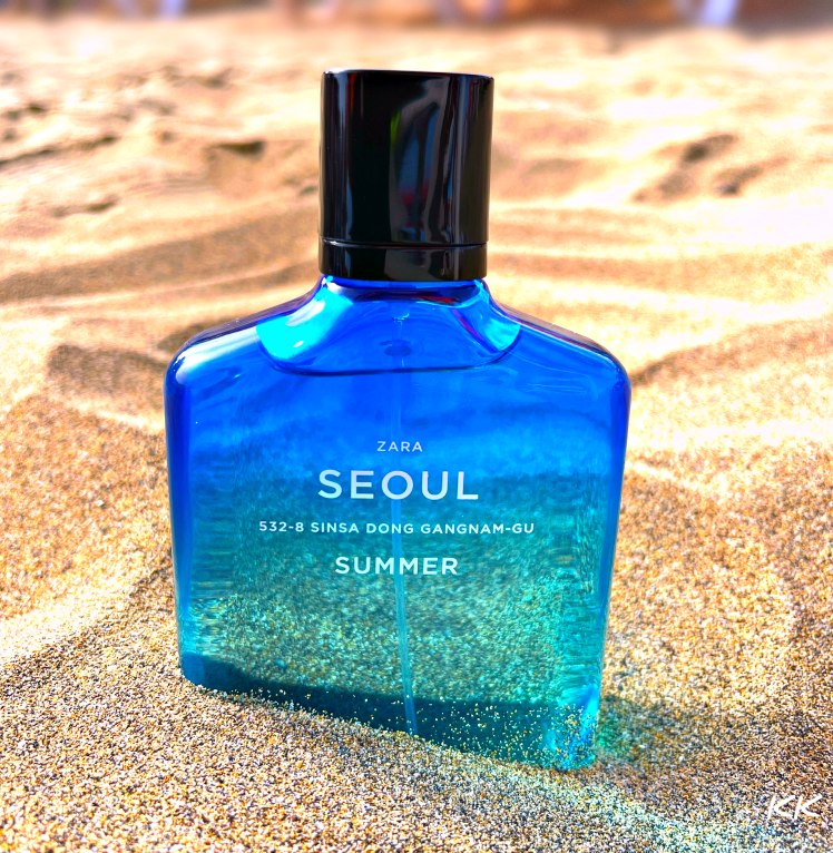 Und da stand dann eine neue kleine blaue Flasche Eau de Toilette mit der Aufschrift „Summer“, und zwar aus der „Städteserie von Zara, diesmal Seoul. 100ml waren für etwas über 10 Euro zu erstehen, und klar wanderte die hübsche Packung auch sogleich in meinen Einkaufskorb.