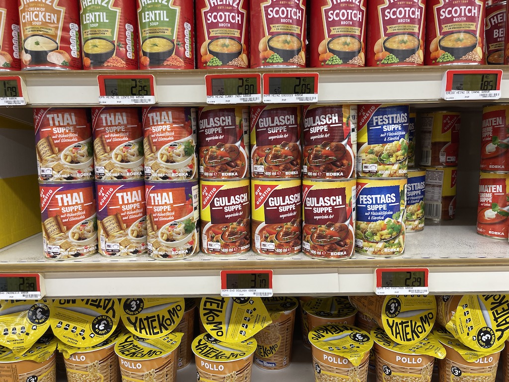 Zuerst habe ich nur spöttisch auf das deutsche Sortiment geschaut, und dazu großspurig getönt, wer das denn bitte brauchen würde. Mittlerweile habe ich nun auch schon das ein oder andere deutsche Produkt gekauft, und dabei tatsächlich jetzt schon ein klein wenig nostalgische Heimatverbundenheit (wie auch immer das definiert ist) verspürt. Hm. Interessant.