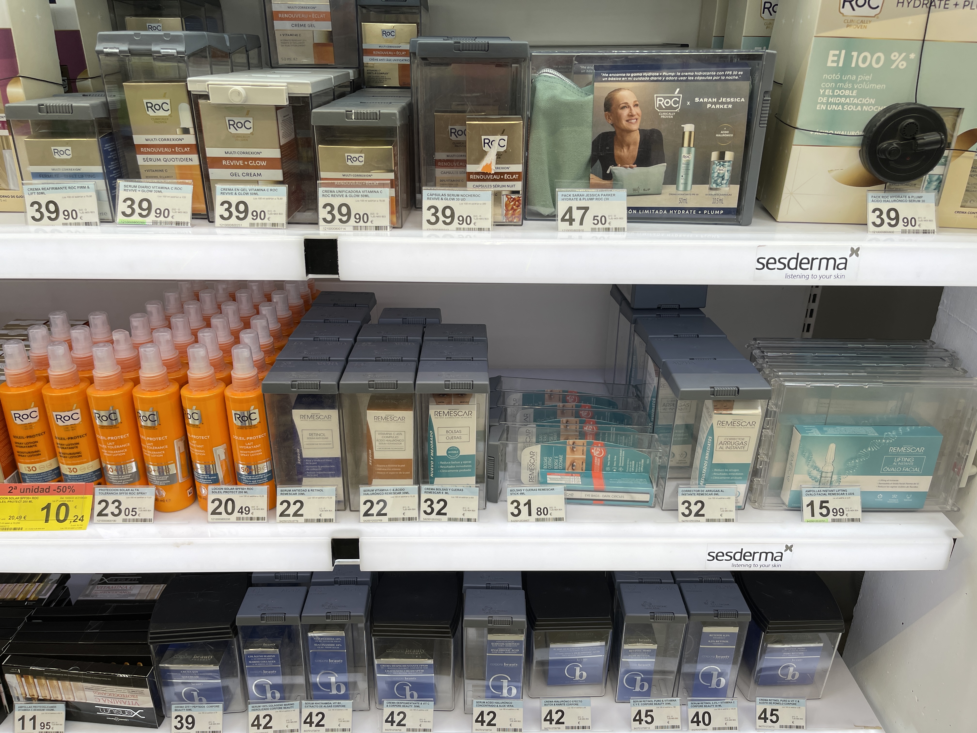 Im selben Einkaufszentrum gibt es aber auch einen sehr grossen Carrefour-Supermarkt, der ebenfalls eine riesige Kosmetikabteilung hat, die beinahe einem grösseren dm entspricht. Die bekannten Player, spanische Marken und auch sehr günstige Eigenmarken sind äusserst verlockend!