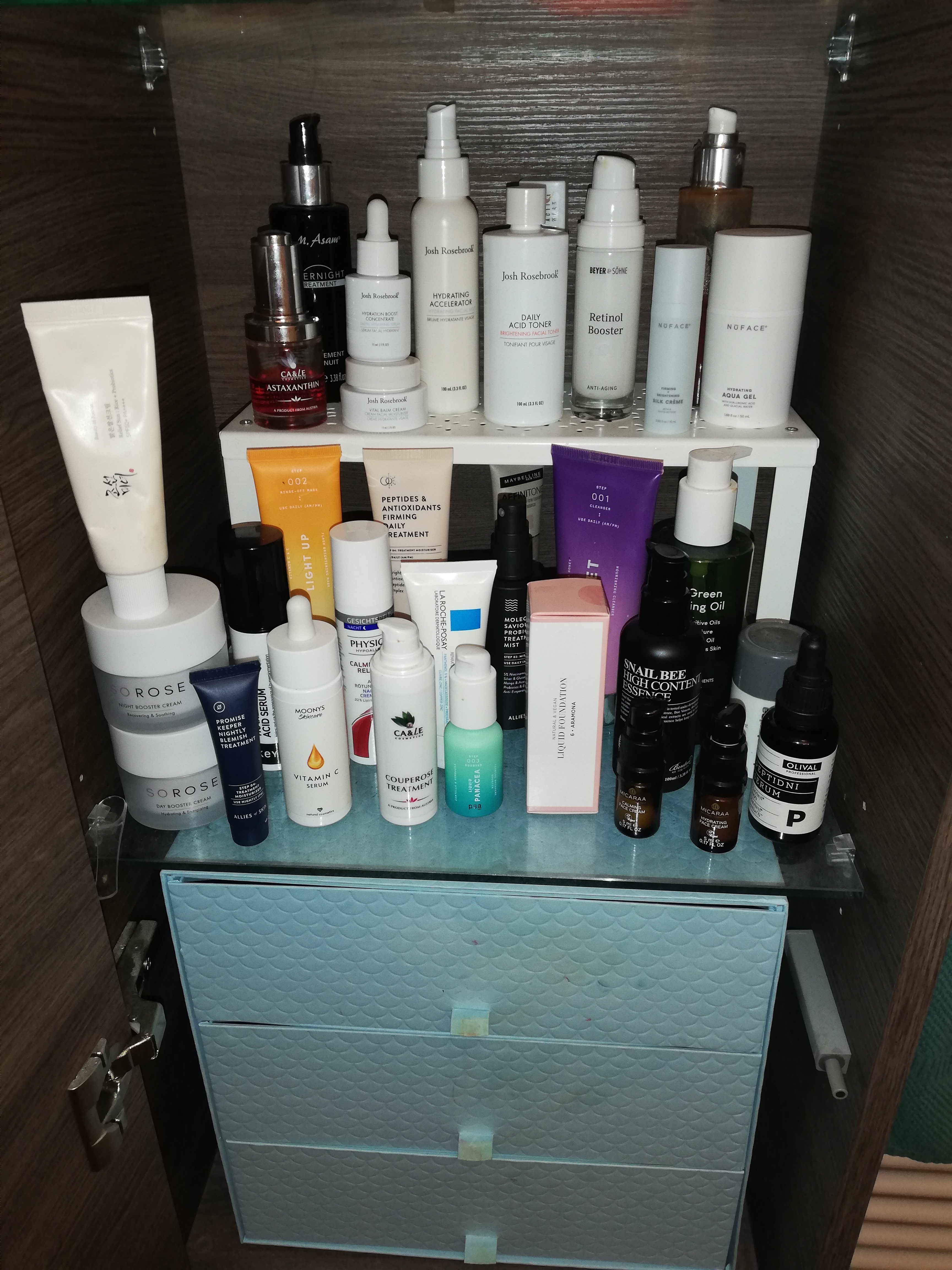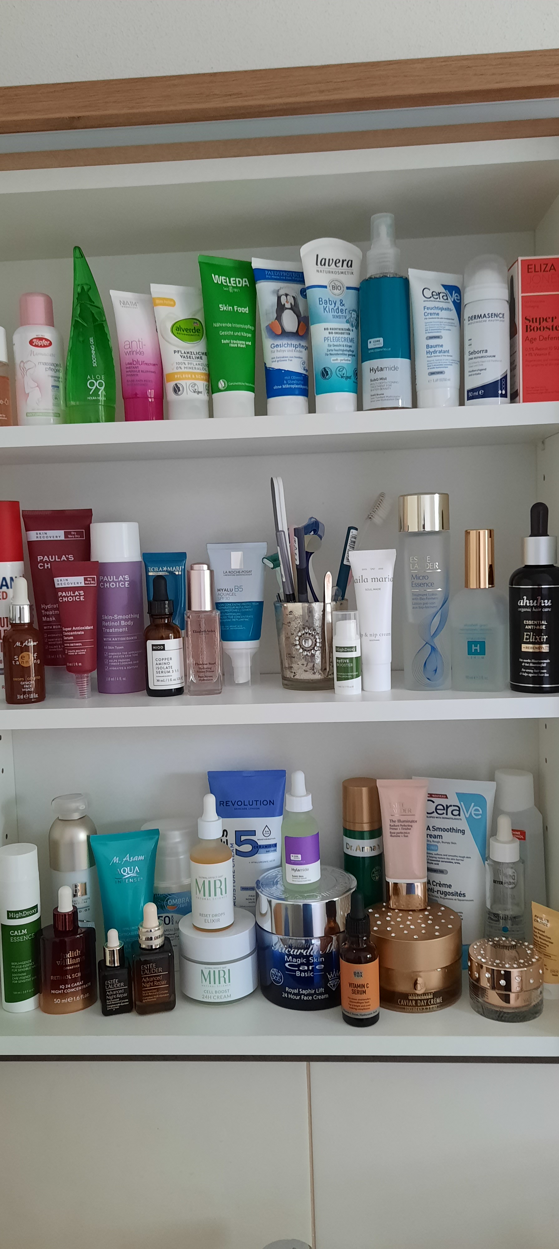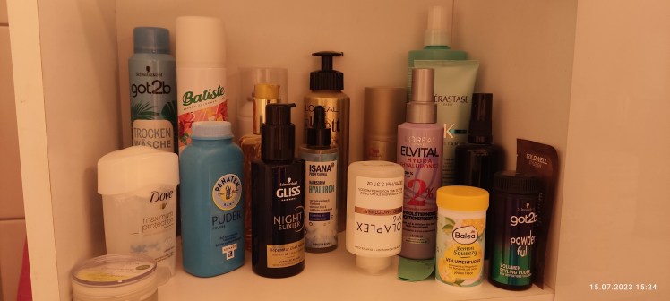 Ich hab die Laden nicht fotografiert. Nur die Pflege. Die Haarprodukte, dekorative Kosmetik, und die mit Proben und fast leeren Überbleibsel nicht. 😅