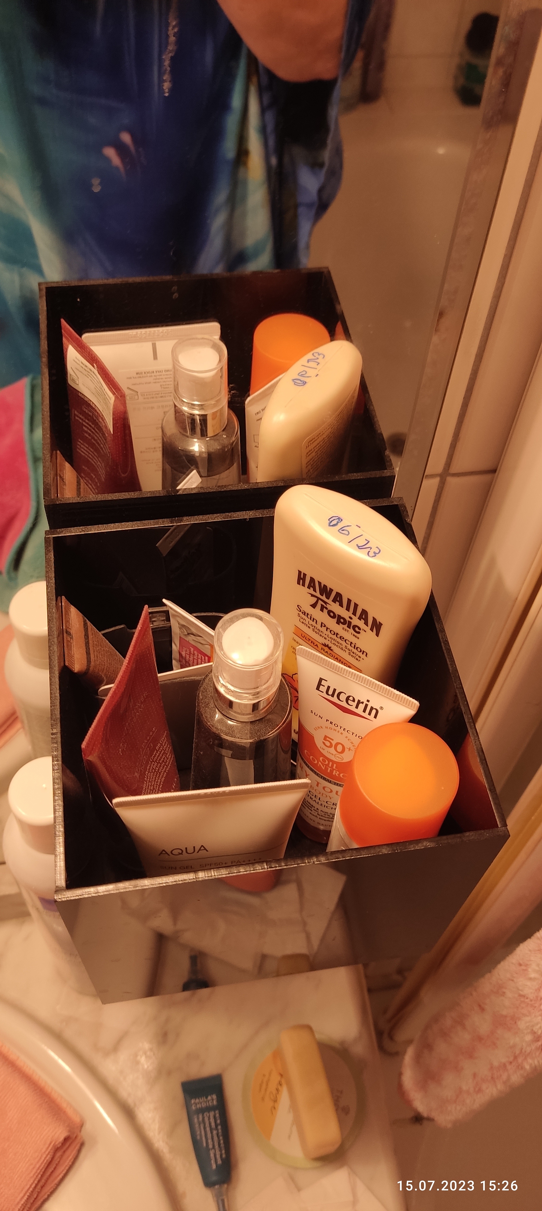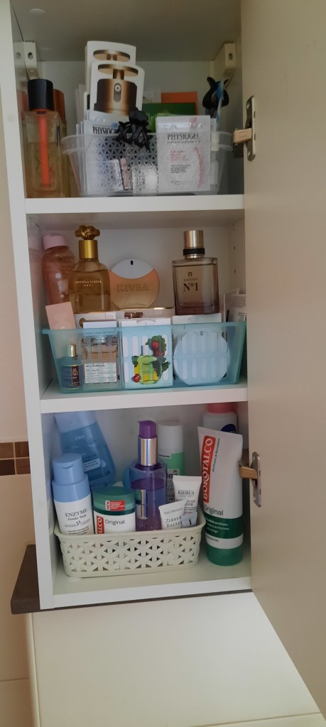 Was man so alles in seinem Badezimmer hortet. Parfüms und Pflegeprodukte finden sich meist in beachtlichen Mengen, und wer kennt es nicht: Man ist irgendwo zu Besuch, und wenn man dann mal zur Toilette muss, sichtet man auch gleich mal gerne die Pflegevorlieben der Gastgeberin oder des Gastgebers. 😉