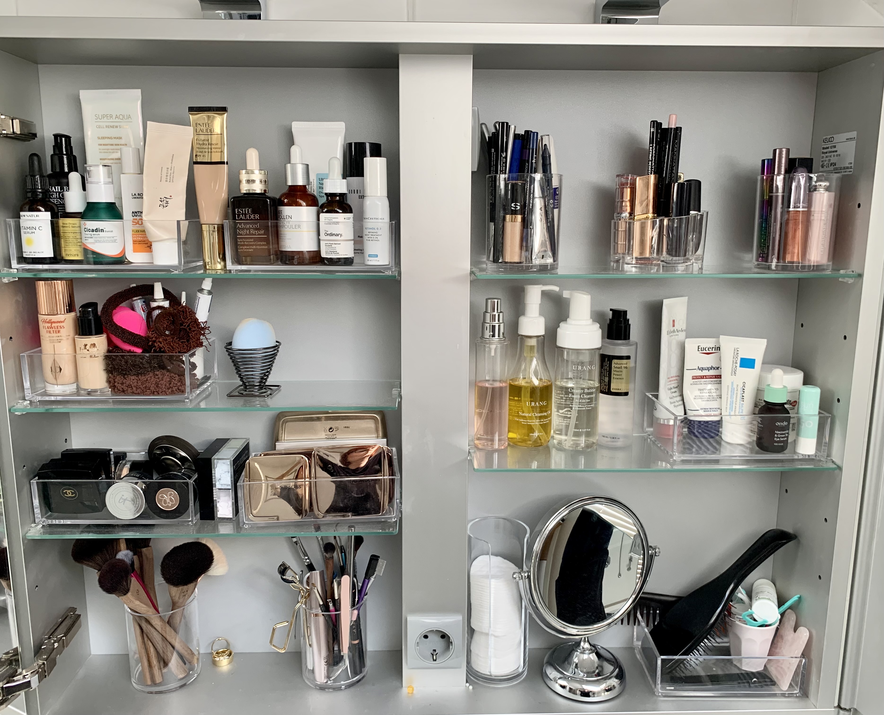 Deine sind die mit Miri unten im Regal, links unten ANR und rechts die goldenen Töpfe😍schon klar. Kurz hast du mich aber auf die falsche Fährte gelotst wg. der Kartons. Aber du hast Deine Vorräte in kleinen Plastikkörbchen nicht in Kartons richtig? Die Bilder darunter gehören doch auch zu Dir oder? Elisabeth Arden Kapseln in kleinen „Tupperdosen“ das müsstest auch von Dir sein….😃🤗