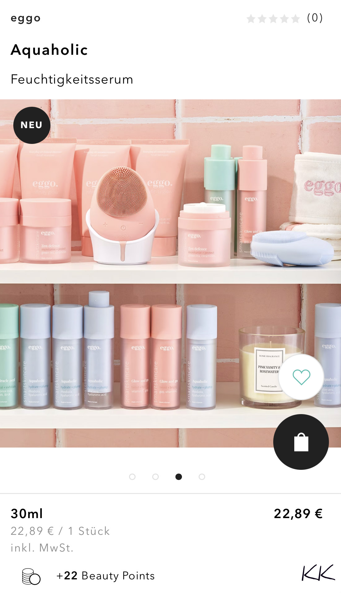 Schön reingetapst bin ich da: Als Verpackungsopfer fand ich die pastellfarbenen Töpfe und Spender einfach schick, und testweise habe ich mich erst einmal für ein Hyaluronserum entschieden. Bei Douglas mit etwas Rabatt gekauft (um die 20 Euro).