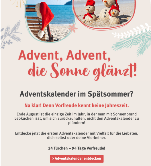 Nicht nur bei Rossmann spinnen die, bei Rewe gab es gestern Stolle, Dominosteine etc. , bei Asam fahren die gerade eine Aktion mit Weihnachtskalender. Nun weiß ich jedenfalls, dass die Sommerferien zu Ende sind. Das ist ja irgendwie alles nicht neu, aber ich finde, es wird jedes Jahr ein bisschen verrückter.